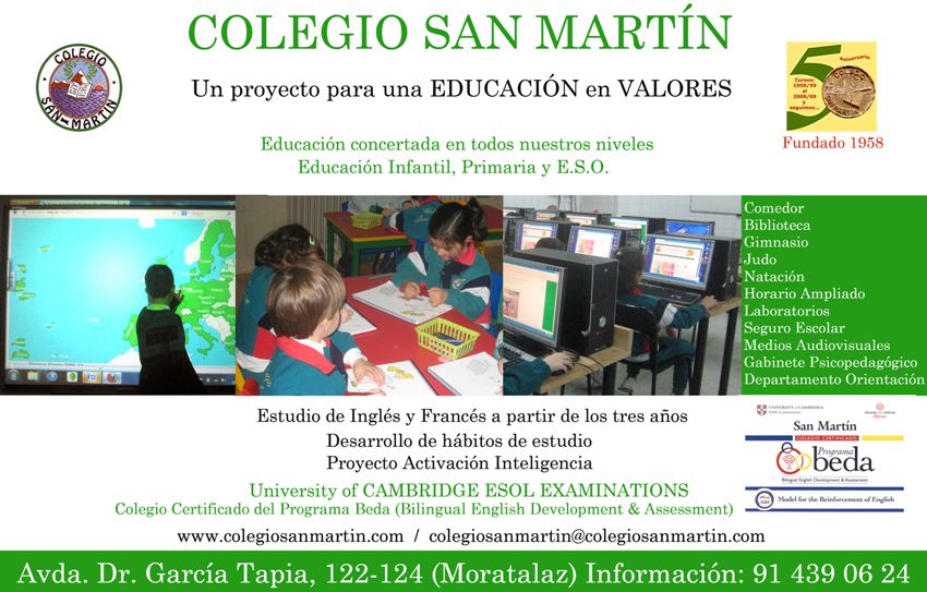 En el Colegio San Martín de Moratalaz (Madrid) llevamos más de 50 años ofreciendo un proyecto coherente, para una educación en valores, dirigida a niños y niñas.