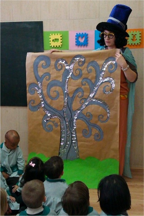 Durante el día del libro nos hizo una visita el prestigioso mago de los cuentos y trajo los árboles mágicos para que los niños le pusieran las hojas.