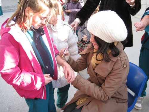 Los alumnos del centro realizaron el paseillo, bailaron y comieron rosquillas y barquillos. Todo ello bajo la atenta mirada de sus padres, que acudieron en gran número a verlos.