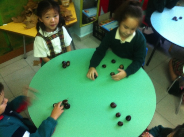El eje principal de la unidad dos es el otoño. Hemos intentado integrar elementos propios de esta estación en todas las actividades que hemos planteado. Se ha creado un rincón del otoño con los frutos típicos que han traído los niños utilizando éstos en fichas de matemáticas, plástica, lectoescritura.