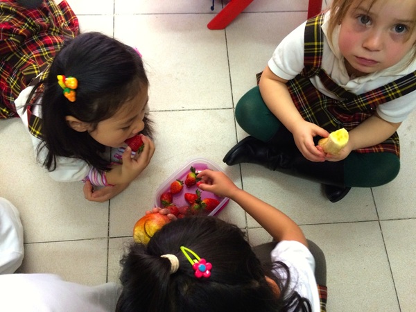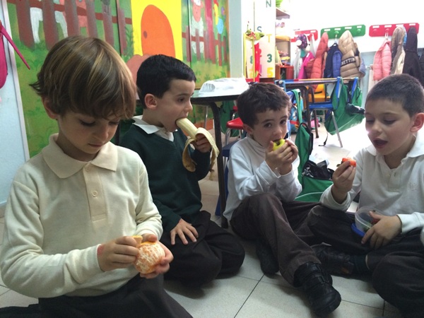 Aprovechando el tema se ha propuesto una merienda saludable en clase que consistía en fruta y en un bizcocho hecho en casa con ingredientes naturales.
