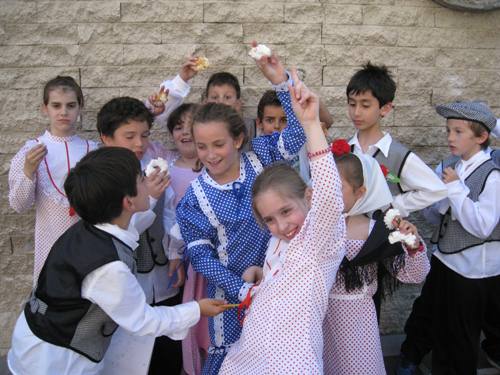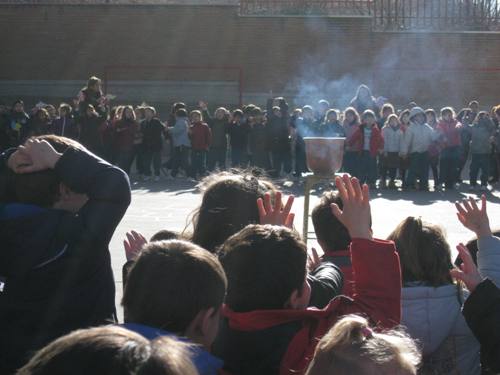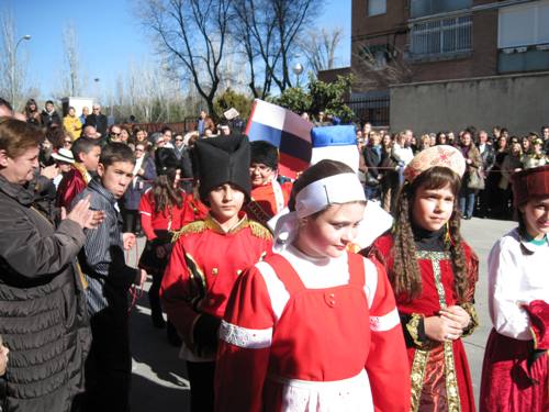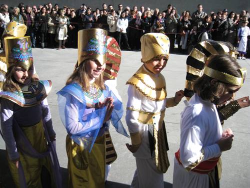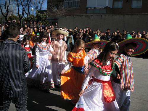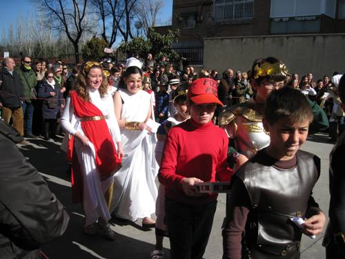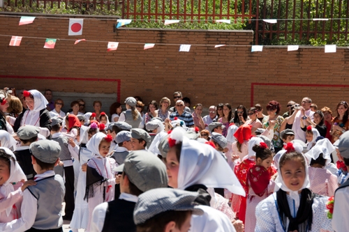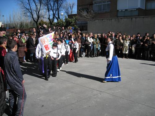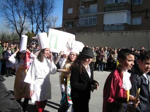 Los alumnos de Infantil y Primaria realizaron el paseillo, bailaron y comieron rosquillas y barquillos. Todo ello bajo la atenta mirada de sus padres, que acudieron en gran número a verlos.