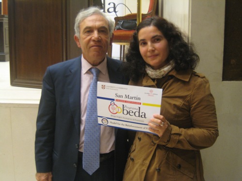 El Director y la Coordinadora del Programa Beda, durante la celebración del II Congreso de Bilinguüismo–Beda, en la que el Colegio San Martín recibió la Certificación que acredita al Centro como miembro del Plan Beda en su Modelo de potenciación del Inglés.