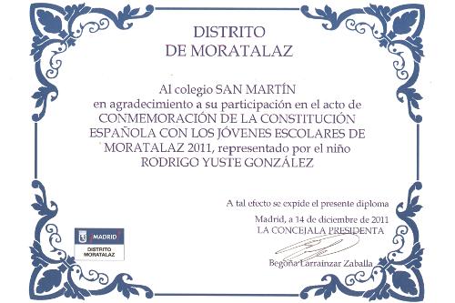 Los alumnos de 6º de Primaria en el Acto Conmemorativo de la Constitución que tuvo lugar el día 14 de noviembre en la Junta Municipal de Moratalaz, con la asistencia de la Concejala Doña Begoña Larraínzar Zaballa.