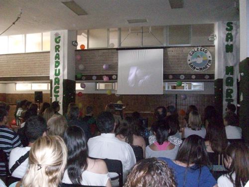 Aprovecharon la ocasión para cantar todos juntos el Himno del Colegio San Martín.