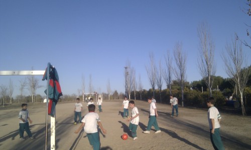 Los profesores y alumnos jugaron un partido como despedida del curso.