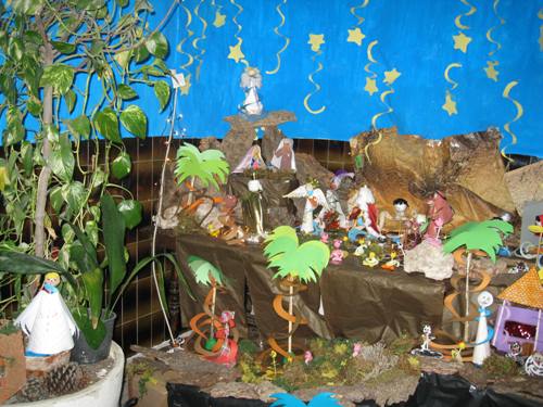 Este año nuestros alumnos elaboraron un Belén realizado con cartulinas, palillos, plastilina y pelotas de pimpón.
