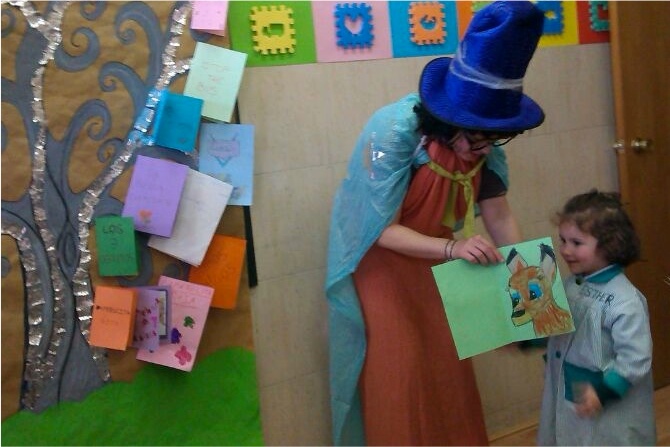 Durante el día del libro nos hizo una visita el prestigioso mago de los cuentos y trajo los árboles mágicos para que los niños le pusieran las hojas.